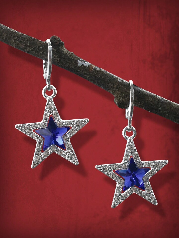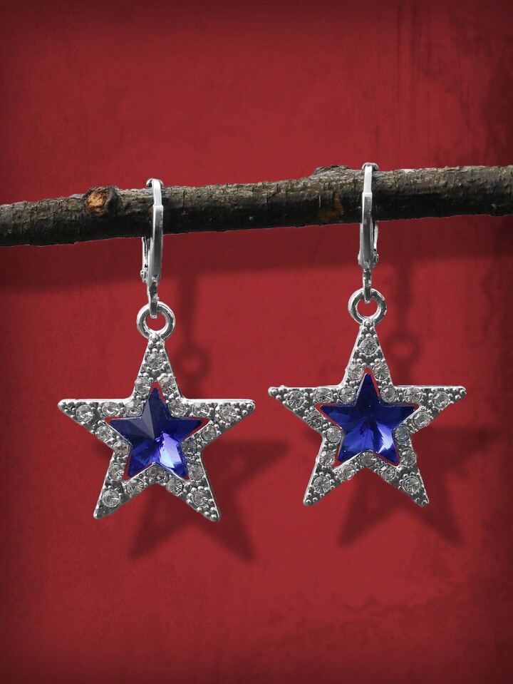 Grunge Punk 1 Paar Ohrringe Blau Stern Form, Anhänger, Dekoriert mit Strassstein,