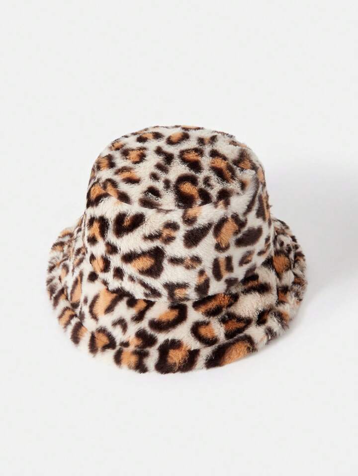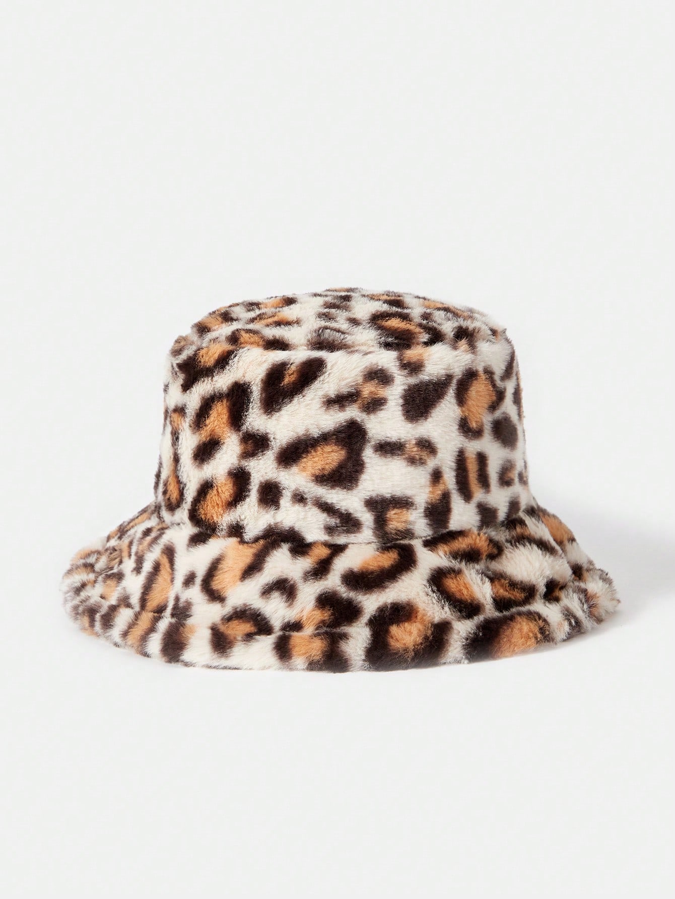 Grunge Punk 1 Stück niedlicher klassischer Leoprint Plüsch Fischerhut, Unisex, für legere Kleidung geeignet