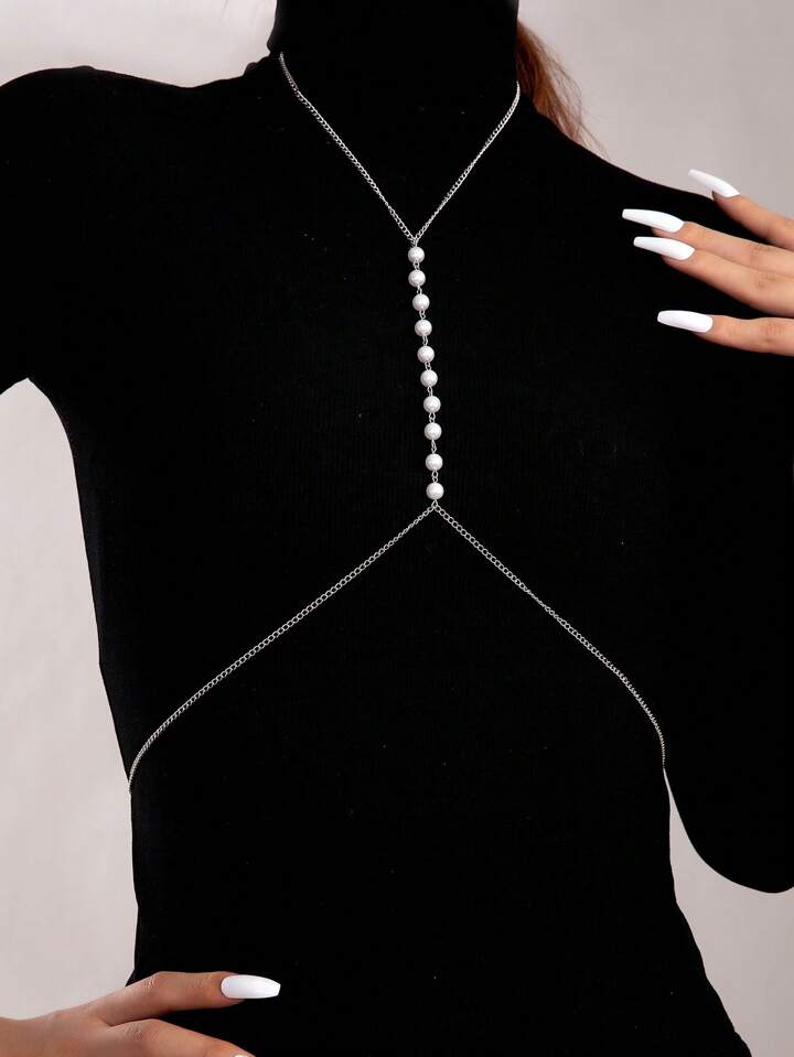 Grunge Punk 1 Stück Körperkette Zinklegierung, Kunstperle Dekor, Für Frauen für Date Geschenk