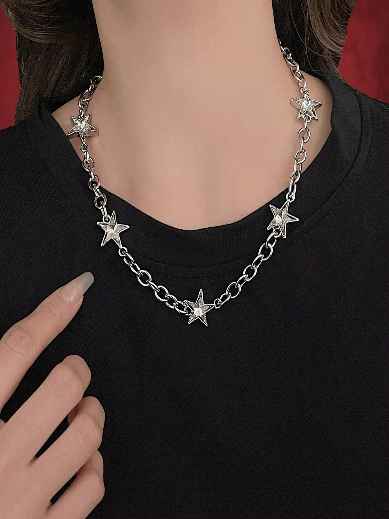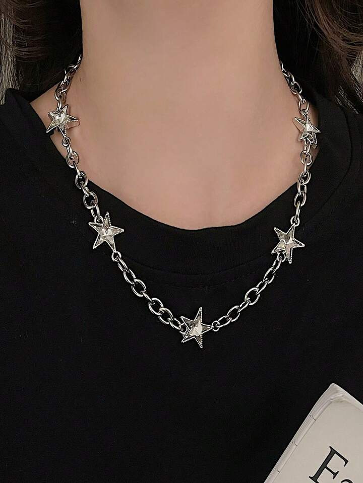 Grunge Punk 1 Stück Zink legierung Strass Stern Dekor Halskette für Frauen für Tägliche Dekoration