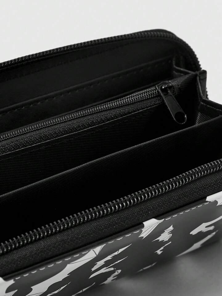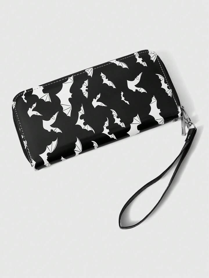 Grunge Punk 1 Stück Gothic Fledermaus Muster Multifunktions Kreditkarten Halter Münzbörse, Mode Party Punk Reißverschluss Lang Geldbörse, Unisex Handgelenk Clutch