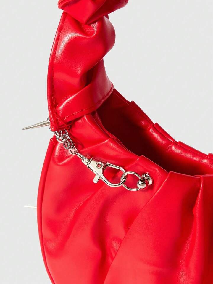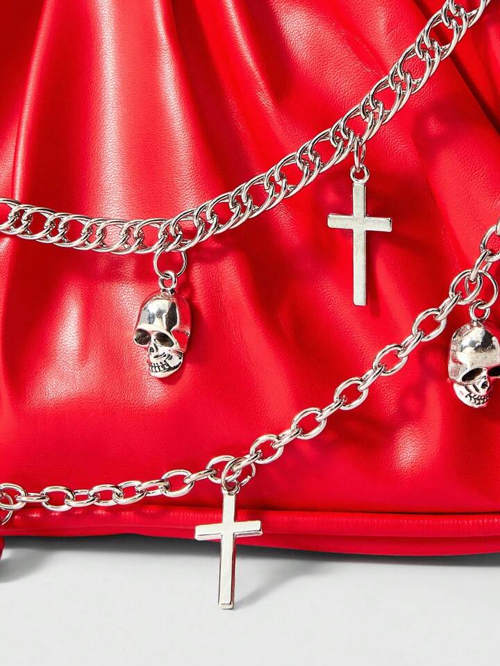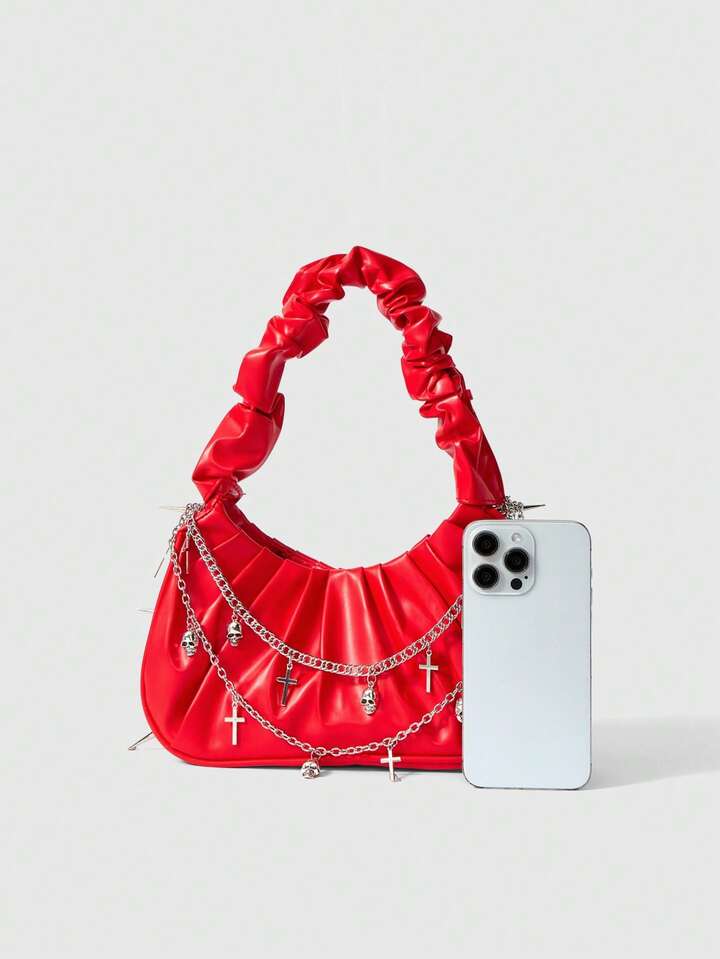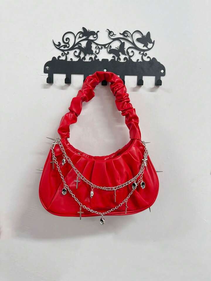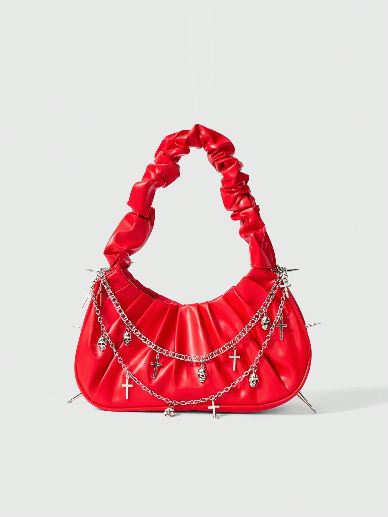 Grunge Punk 1pc Punk Cross Studded Skull Prints Ruffle Cloud Design Women Shoulder/Underarm Handbag, Versatile Dark Style, Halloween Bags Perfect For Fancy Party Matching With Halloween Costumes