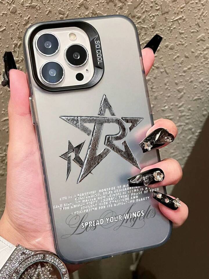 Grunge Punk 1 Stück Punk-Stil Metallic Stern Muster glänzendes Handyhülle, kompatibel mit iPhone 11 12 13 14 15 Pro Max 16 16 Pro 16 Plus 16 Pro Max