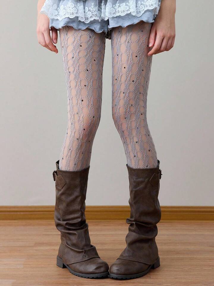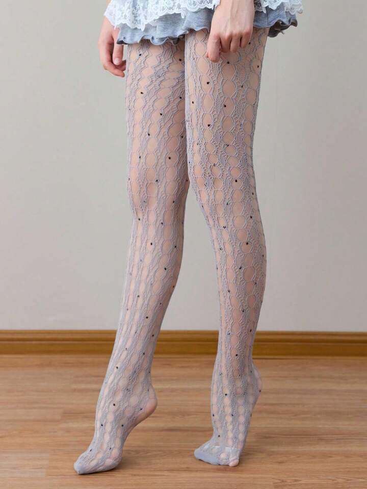 Grunge Punk 1 Stück Punk/Y2K Stil Set: 1 Paar graue einfarbige zerrissene Netzstrümpfe + 1 Paar Polka Dot Strumpfhose, geeignet für den täglichen Straßenmode-Stil