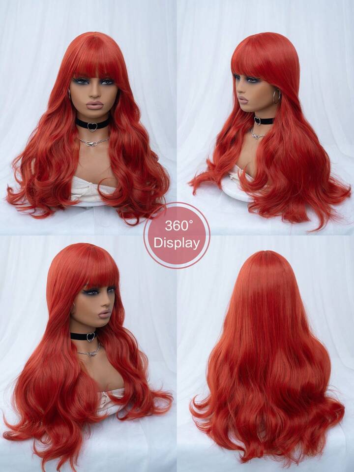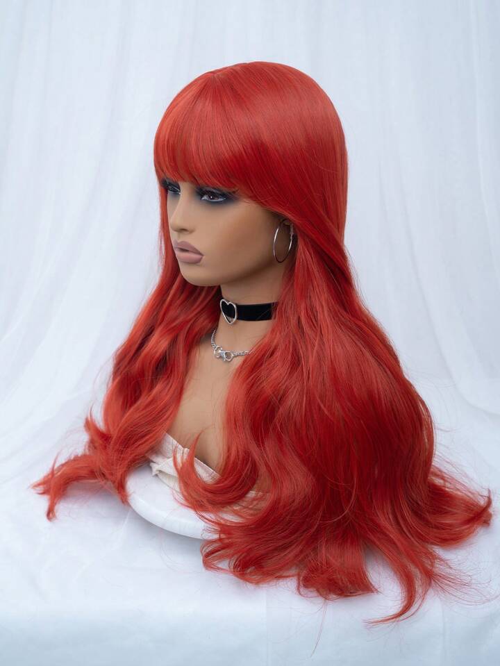 Grunge Punk 1 Stück Perücke Rot Lang Lockig, Welle Synthetik Haar mit Pony