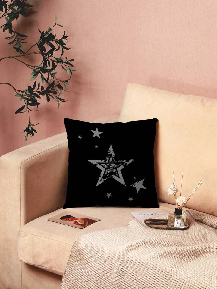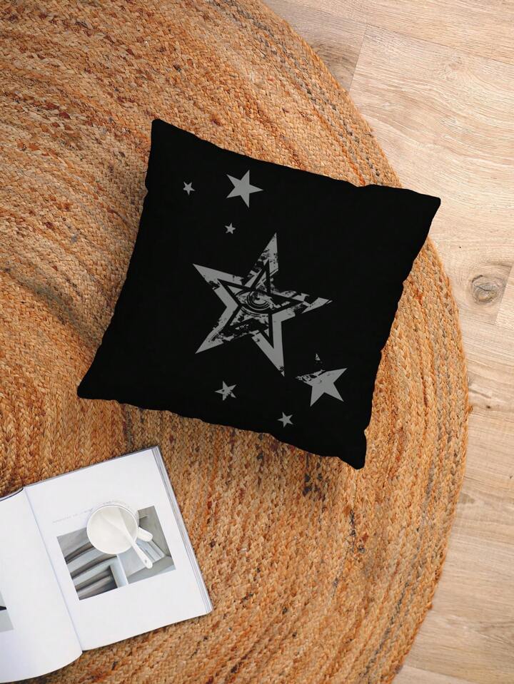 Grunge Punk 1 Stück Retro Stern Augen Muster Deko Kissenbezug, Samt bedruckter quadratischer Kissenbezug für Wohn- und Schlafzimmer Dekoration, Sofakissen Bezug, geeignet für alle Jahreszeiten