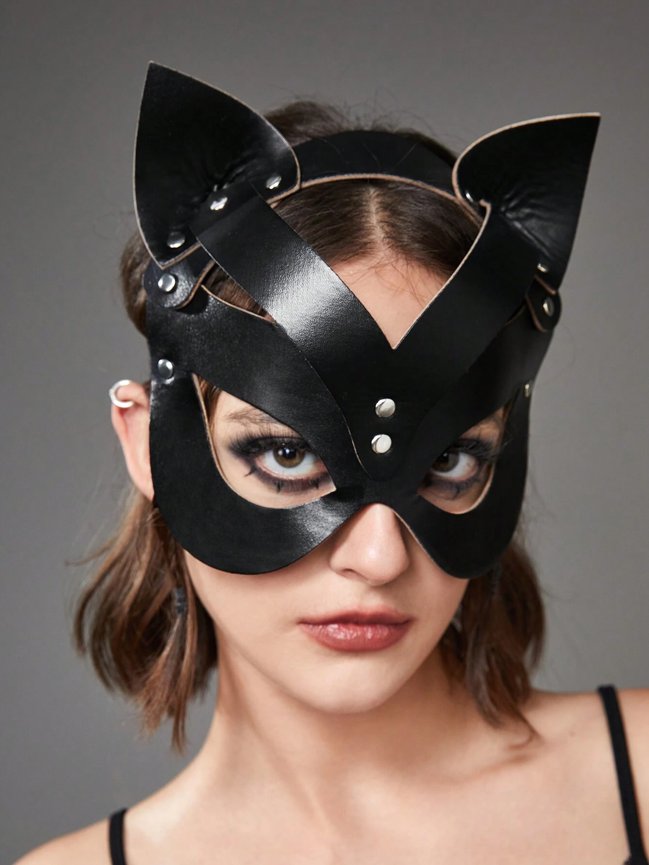 Grunge Punk 1 Stück Mundschutz einfarbig Nieten Dekor, Katze Design,