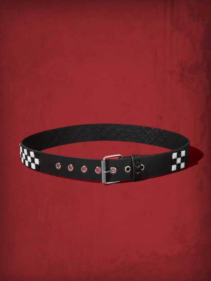 Grunge Punk Frauen 1 Stück Gürtel mit Kariert quadratischer Schnalle, Fashion
