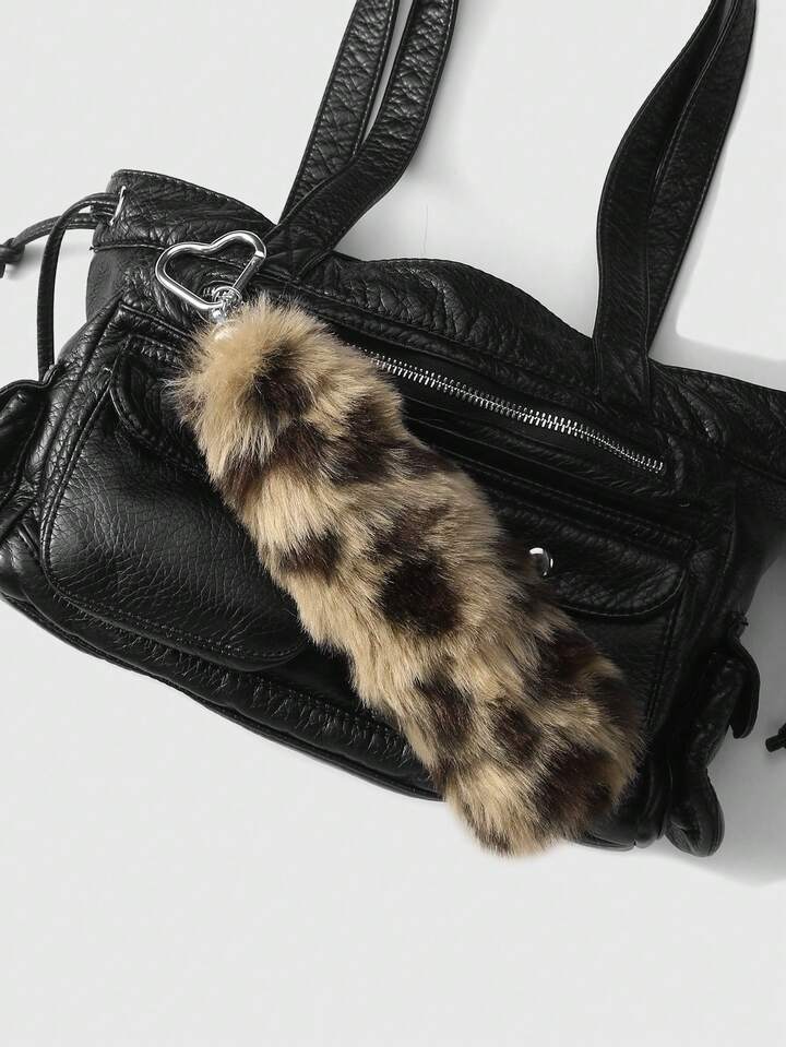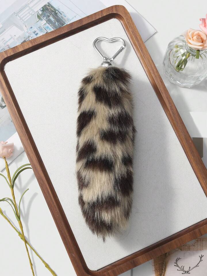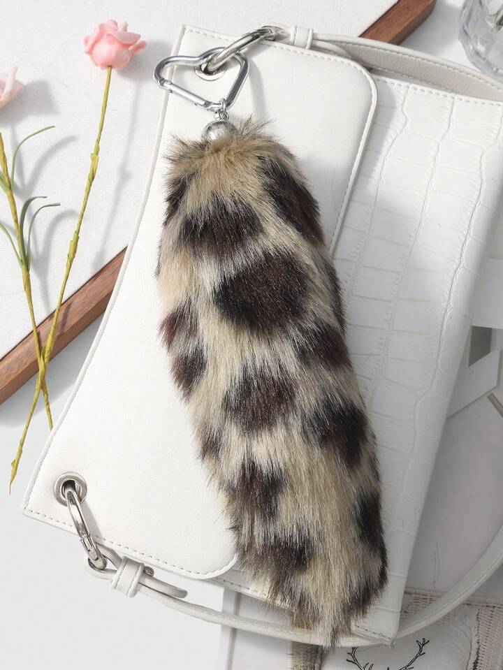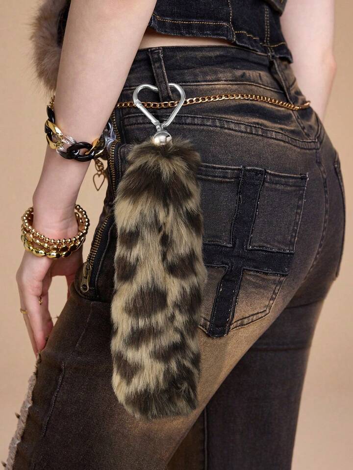 Grunge Punk 1 Stück Y2K modischer Retro-Chic hochwertiger brauner Kunstpelz Leoparden-Muster Tierschwanz Schlüsselanhänger & Schlüsselring Taschenanhänger, geeignet für Damen/Mädchen Alltagskleidung, Urlaubsgeschenk