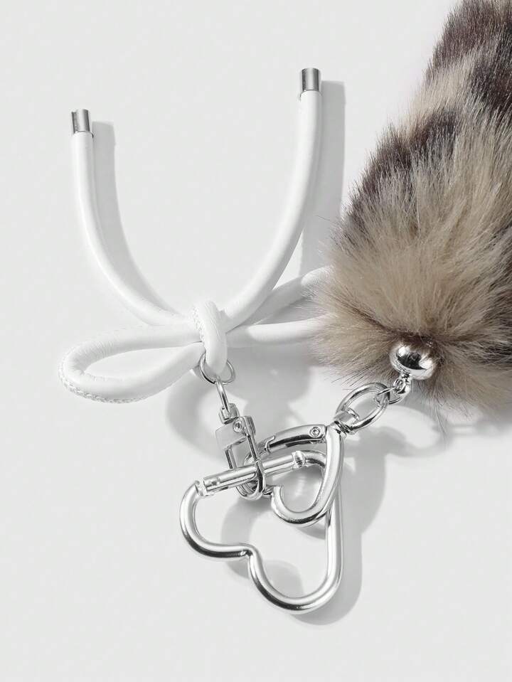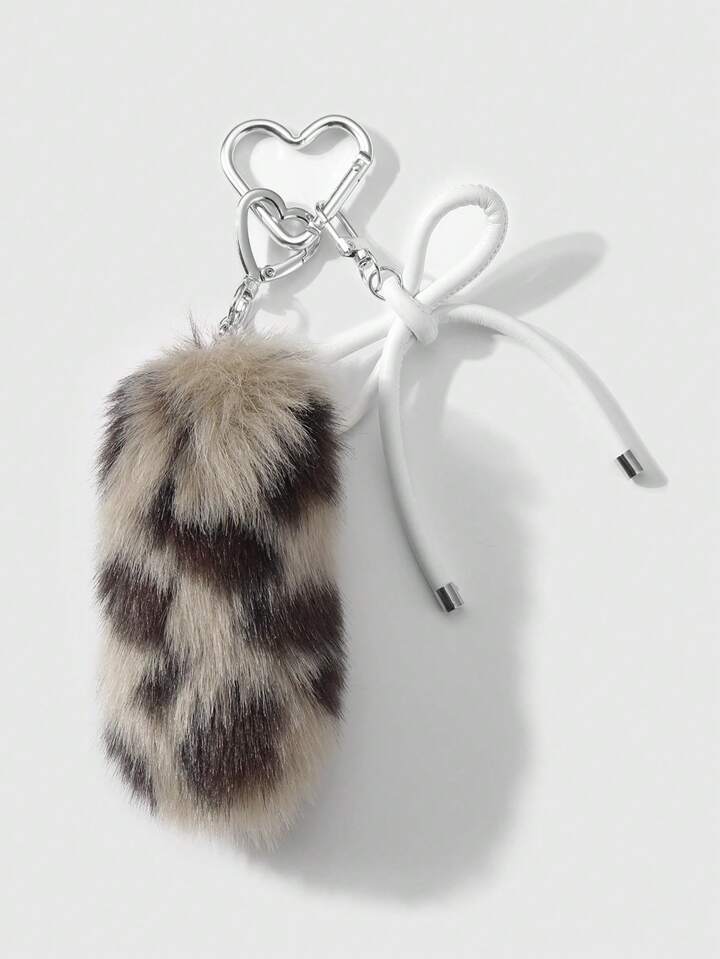 Grunge Punk 1 Stück Y2K stylischer, eleganter Schlüsselanhänger und Taschenanhänger aus weißem Leder-Schleife und braunem flauschigem Leopardenfell-Imitat, passend für Frauen, tolles Geschenk