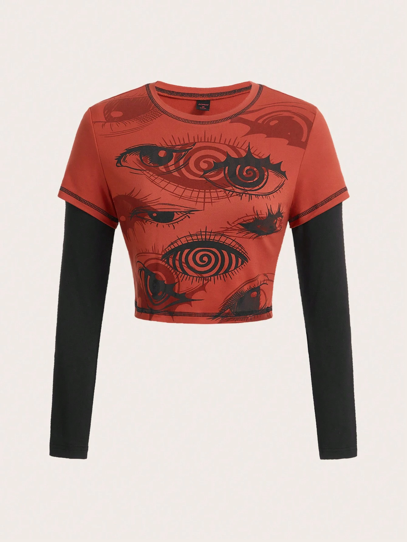 Grunge Punk 2-in-1 Crop T-Shirt mit Auge Muster