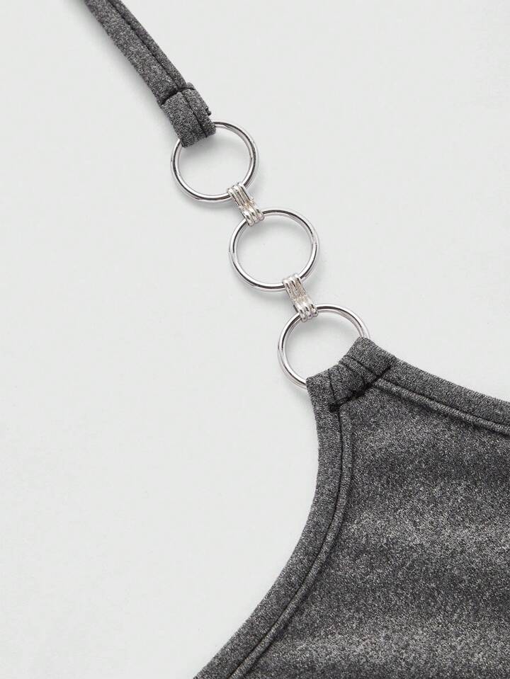 Grunge Punk 2-Teiliges Set: Y2K Stil Carmen-Crop-Top für Frauen mit Metall-Ring-Schnalle mit Off-Shoulder