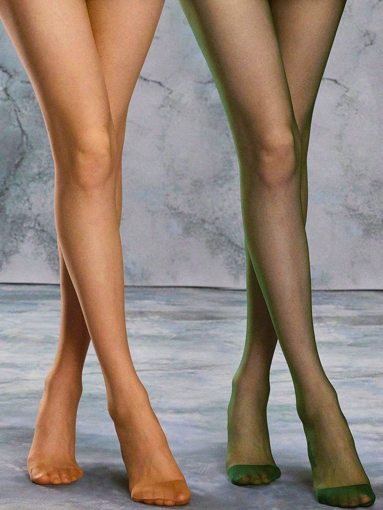 Grunge Punk 2 einfache grün-braune einfarbige Strümpfe, punk-style zerrissene Strumpfhose, vielseitig einsetzbare dünne Leggings (Das Bild zeigt nur den Effekt, das tatsächliche Produkt muss vom Kunden manuell zerrissen werden)