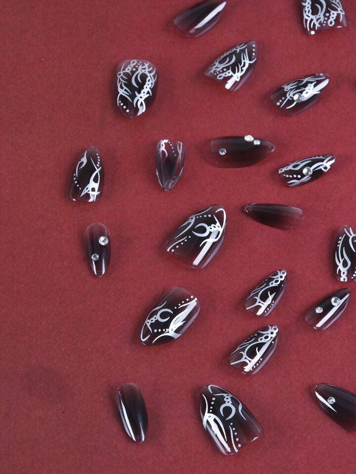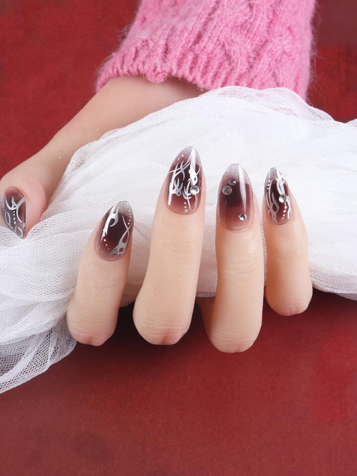 Grunge Punk 24 Stücke Mandel Farbverlauf, Kunstnägel mit & 1 Blatt Band,