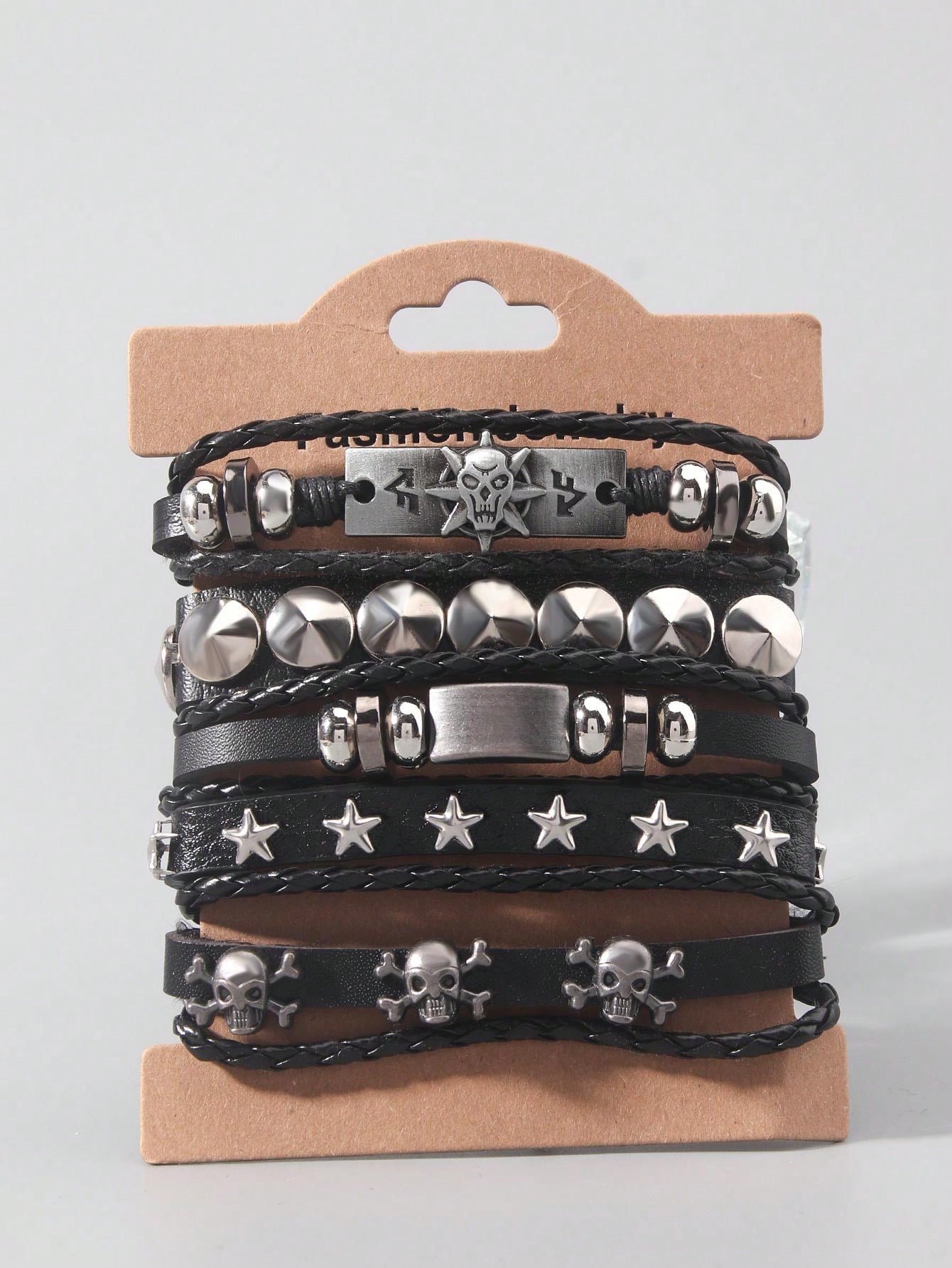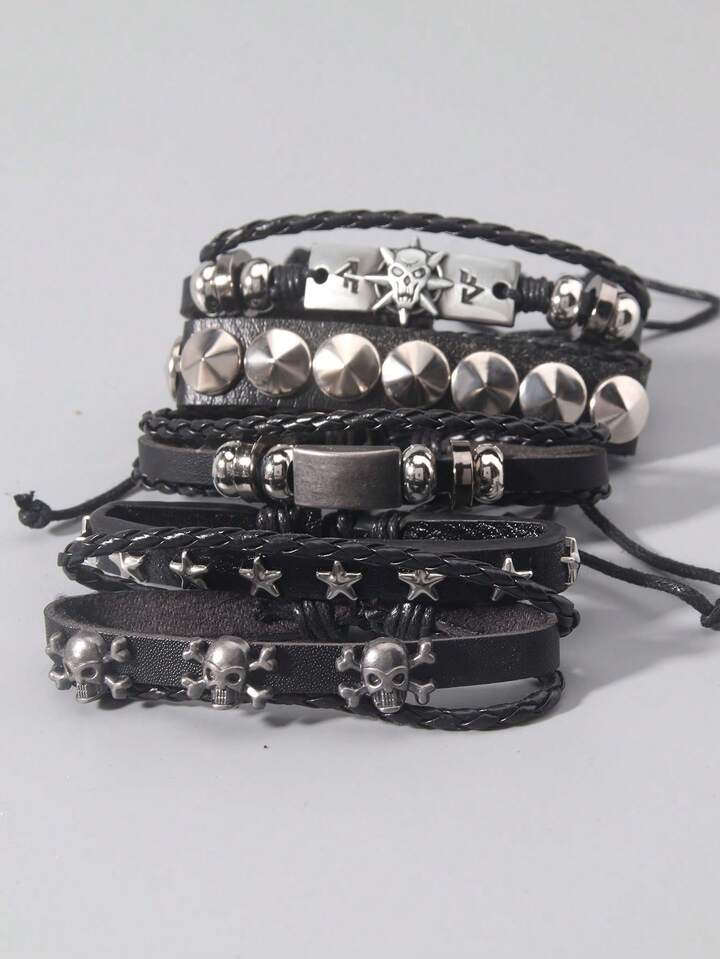 Grunge Punk 5 Stücke/Set, Punk Mode personalisiertes Skelett, Sterne, Metall, mehrschichtiges handgewebtes Muster Herren Armband, Damen Armband, bevorzugtes Geschenk.