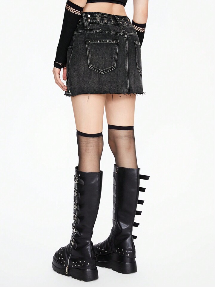 Grunge Punk Asymmetrischer Denim Rock mit Taille, Sommer