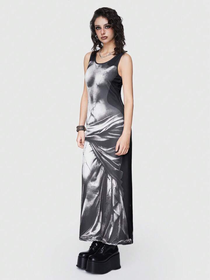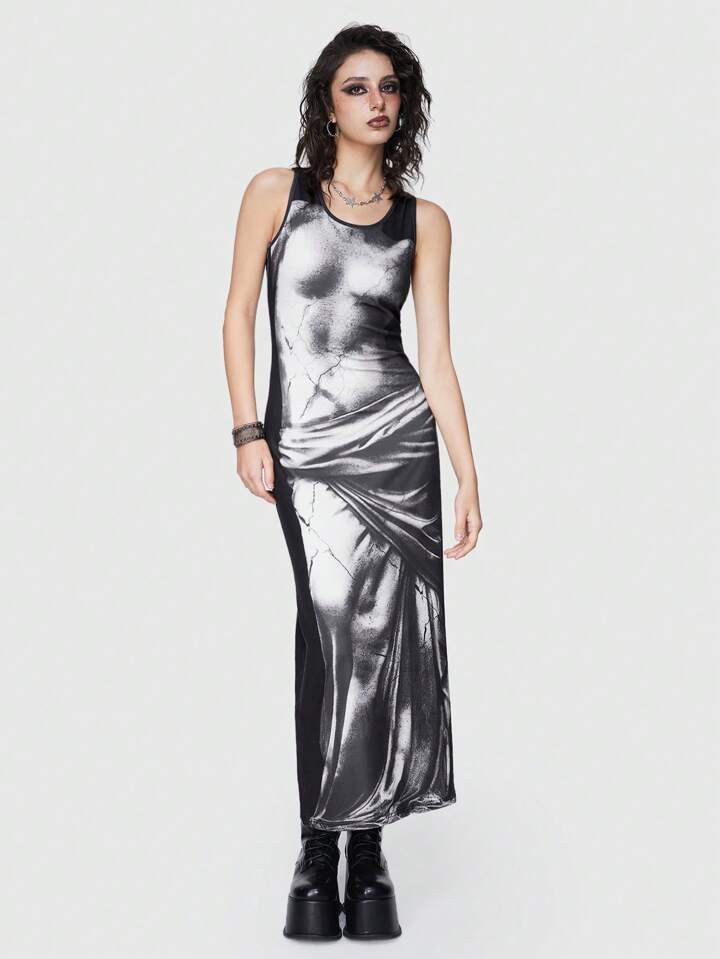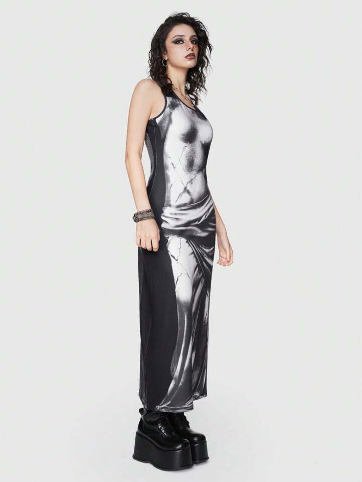 Grunge Punk Body Print Ärmelloses Kleid