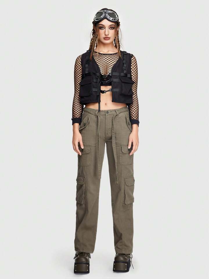 Grunge Punk Weste mit Schnallendetail und Pattentaschen