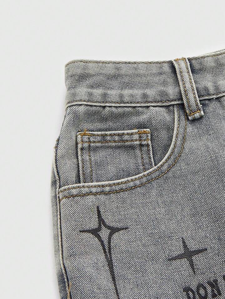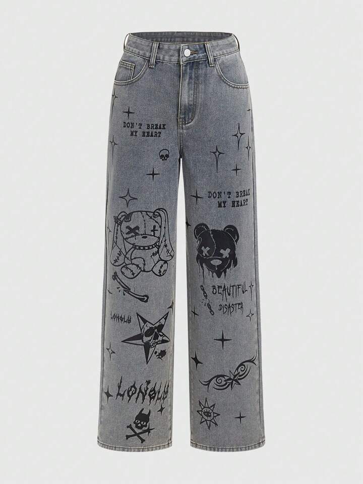 Grunge Punk Casual Und Vielseitige Grafischen Druck Frauen Denim Hose
