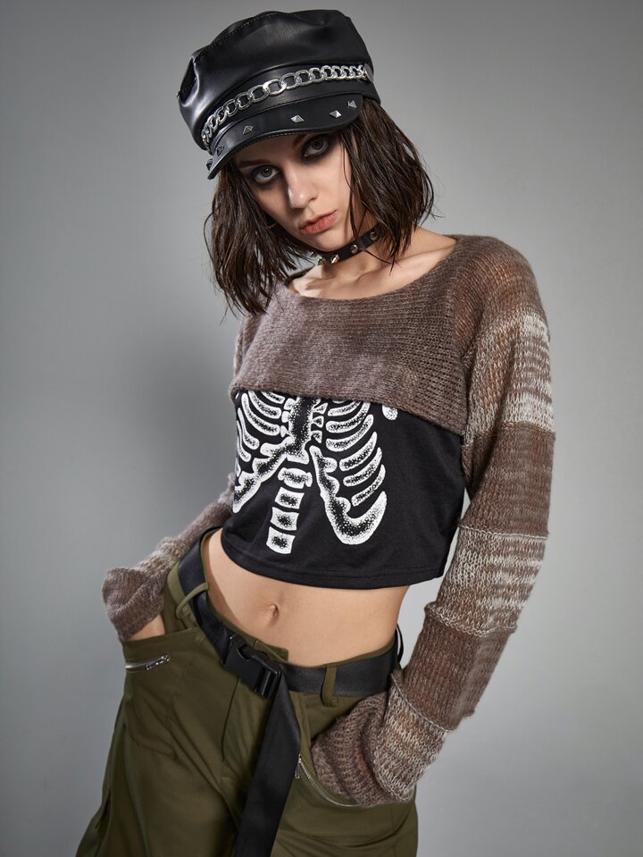 Grunge Punk Pullover mit Farbblock, Super Crop