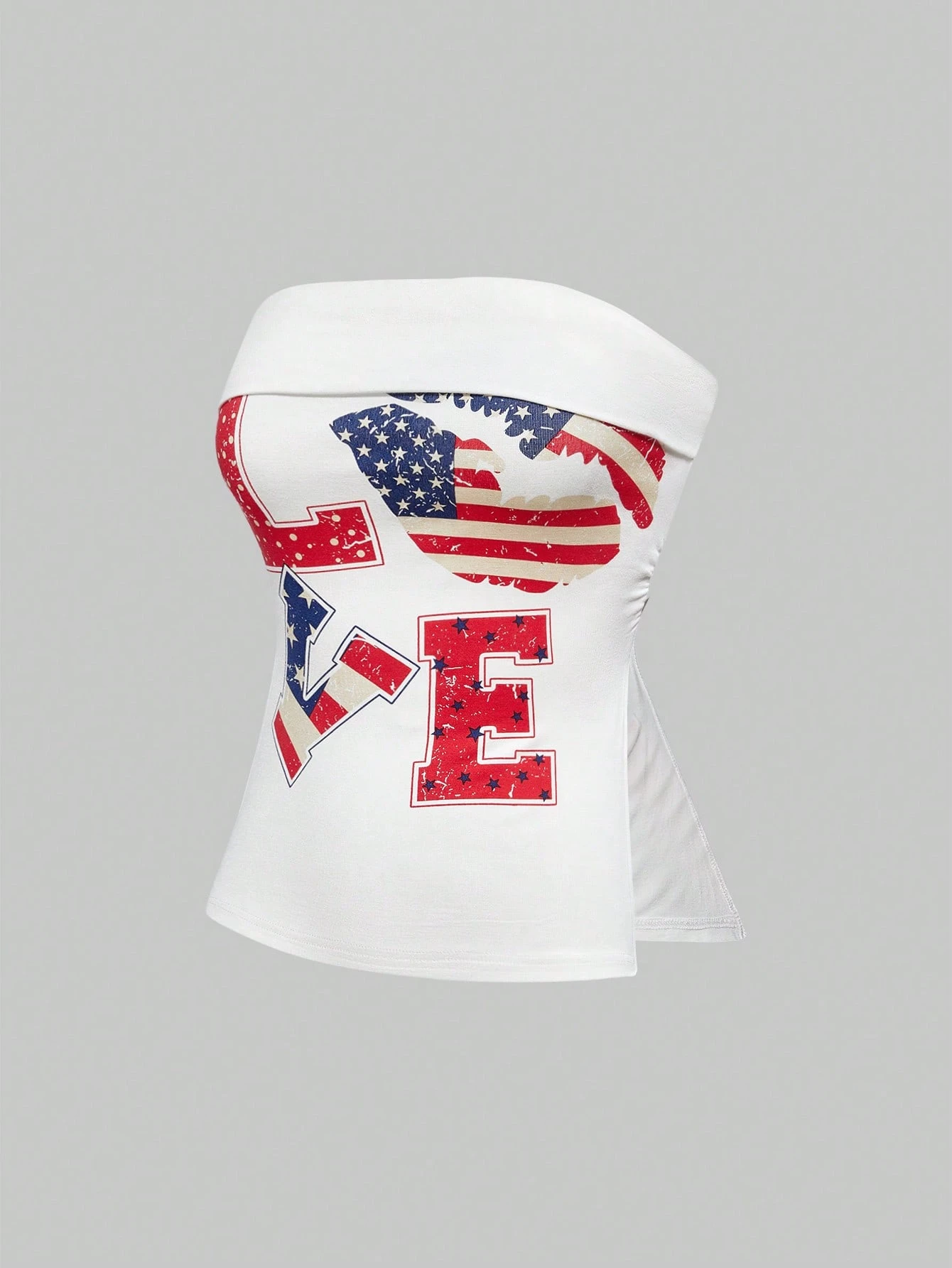 Grunge Punk Konzert Frauen Flagge & Lippen Muster trägerloses Crop Top