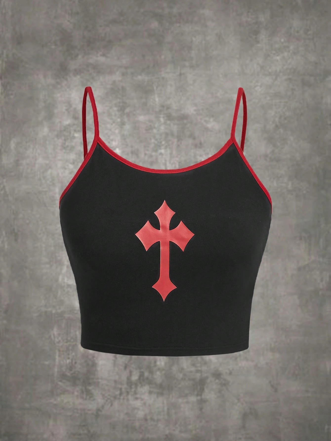 Grunge Punk Cami Top mit Kreuz, Muster, Kontrastsaum,