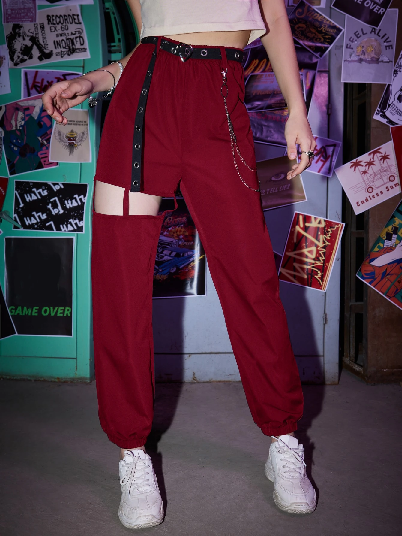 Grunge Punk Karottenhose mit Ausschnitt