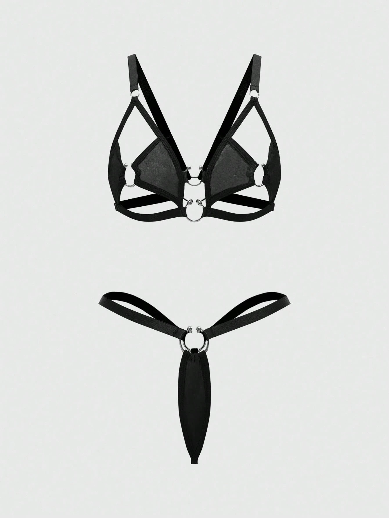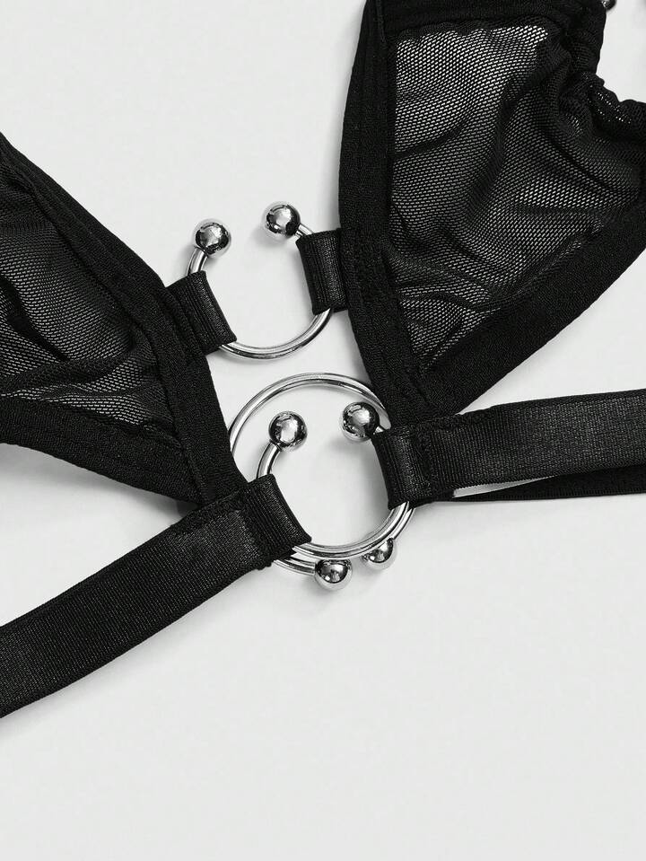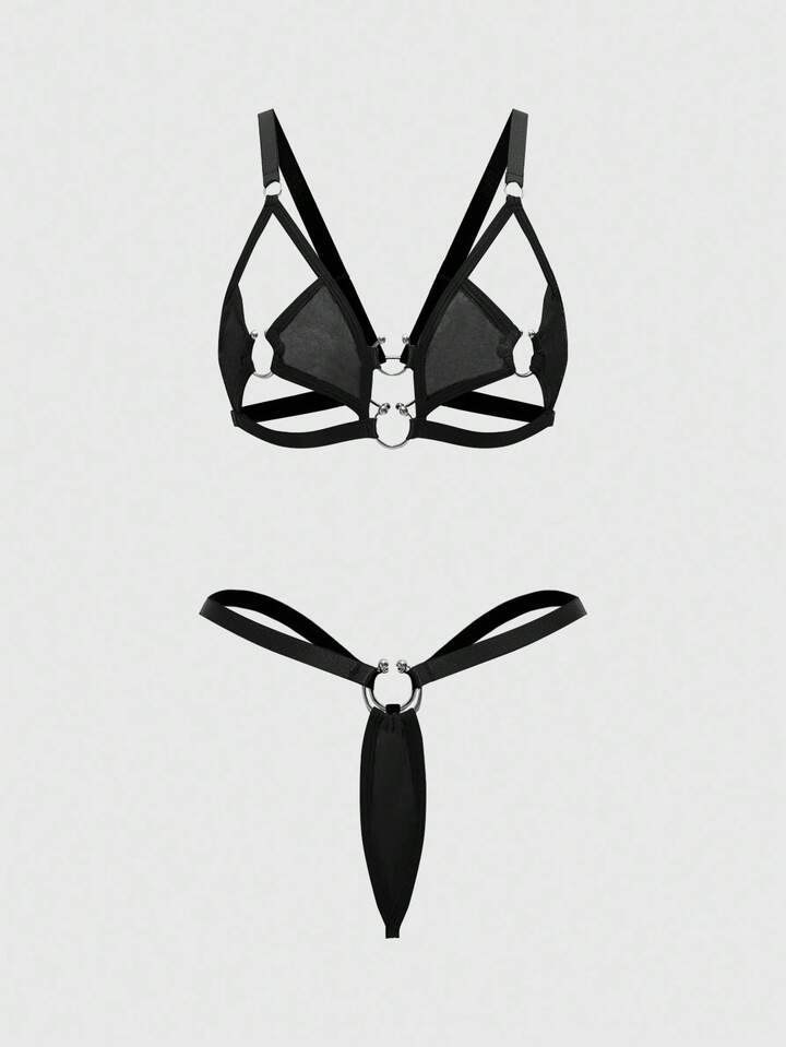 Grunge Punk Dunkel Punk Metall Ring Sexy Bustier & String Unterwäsche Set