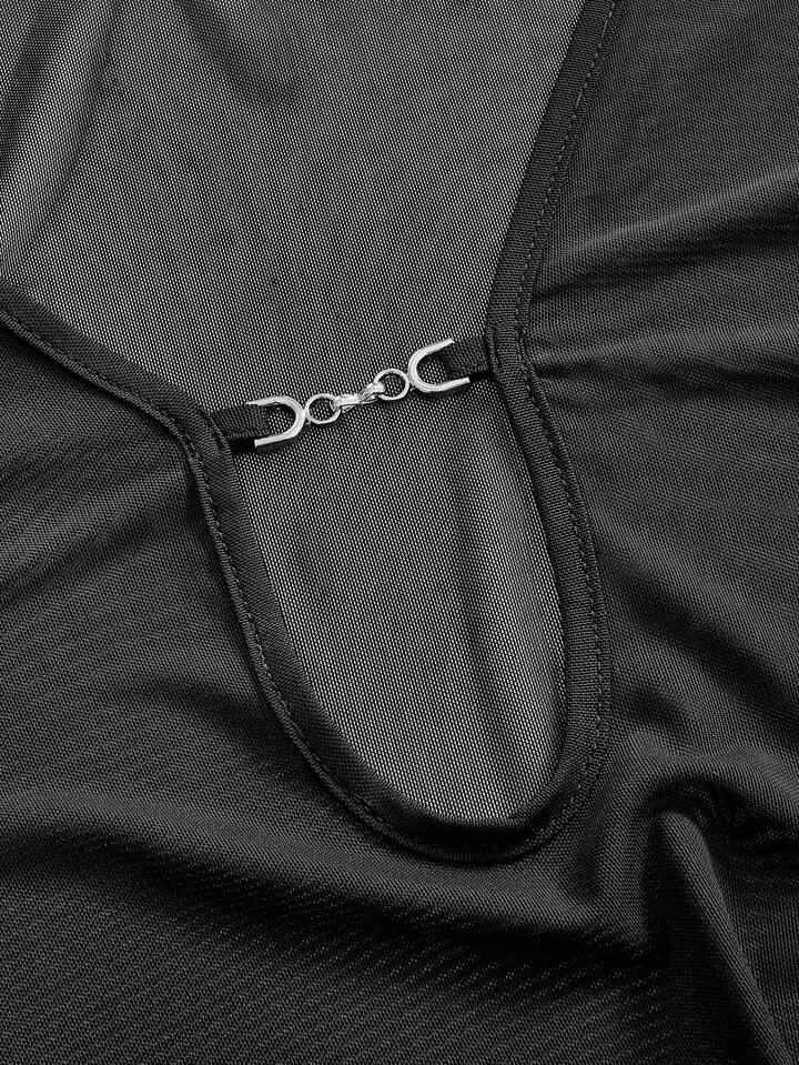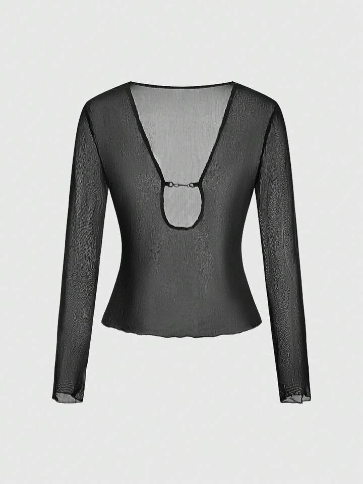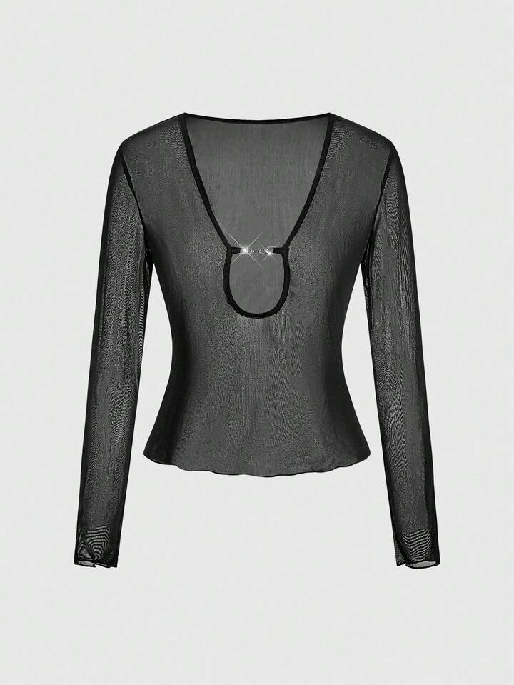 Grunge Punk Dunkel Punk Sexy transparente Mesh U-Ausschnitt Bluse für Frauen