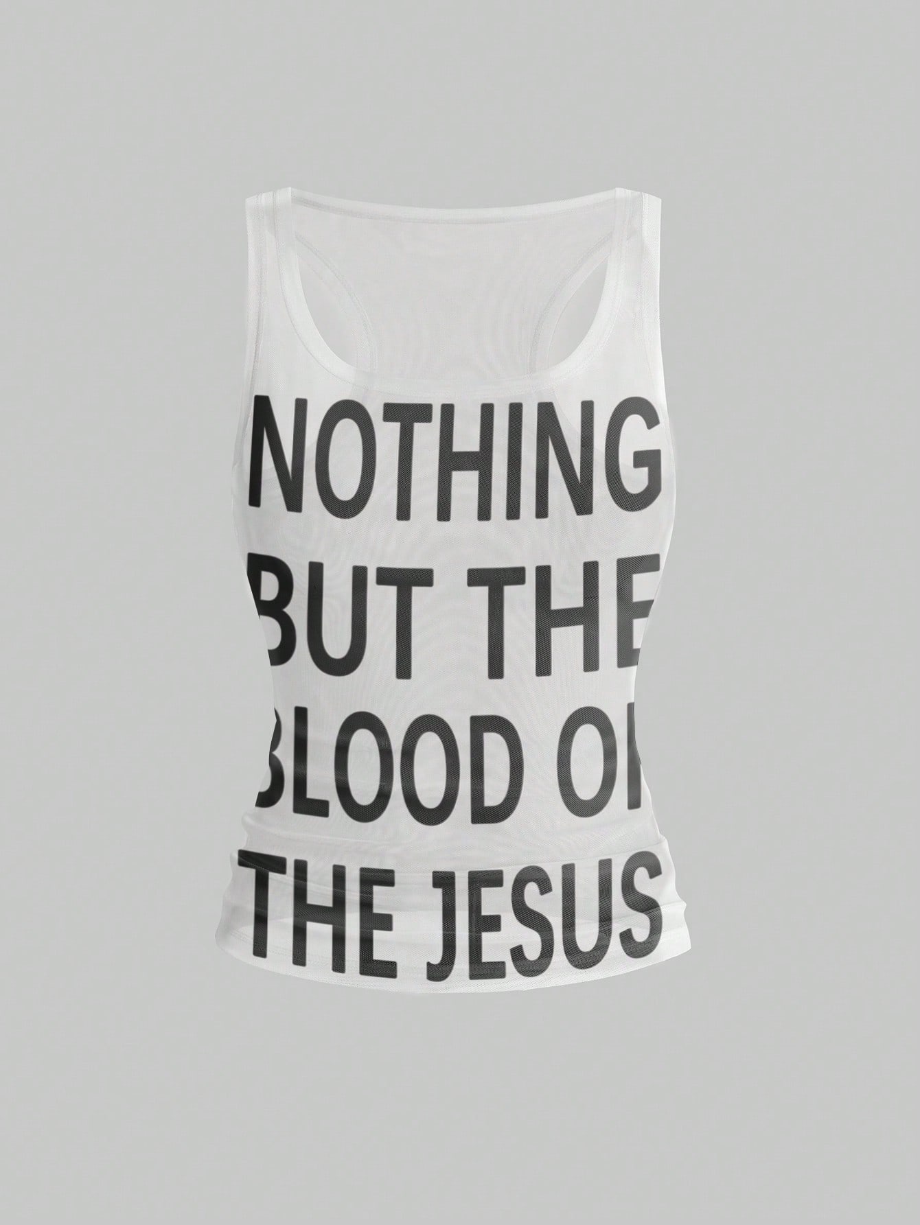 Grunge Punk Dunkel bedrucktes Musik Festival Sexy transparentes Mesh Träger Top für Frauen