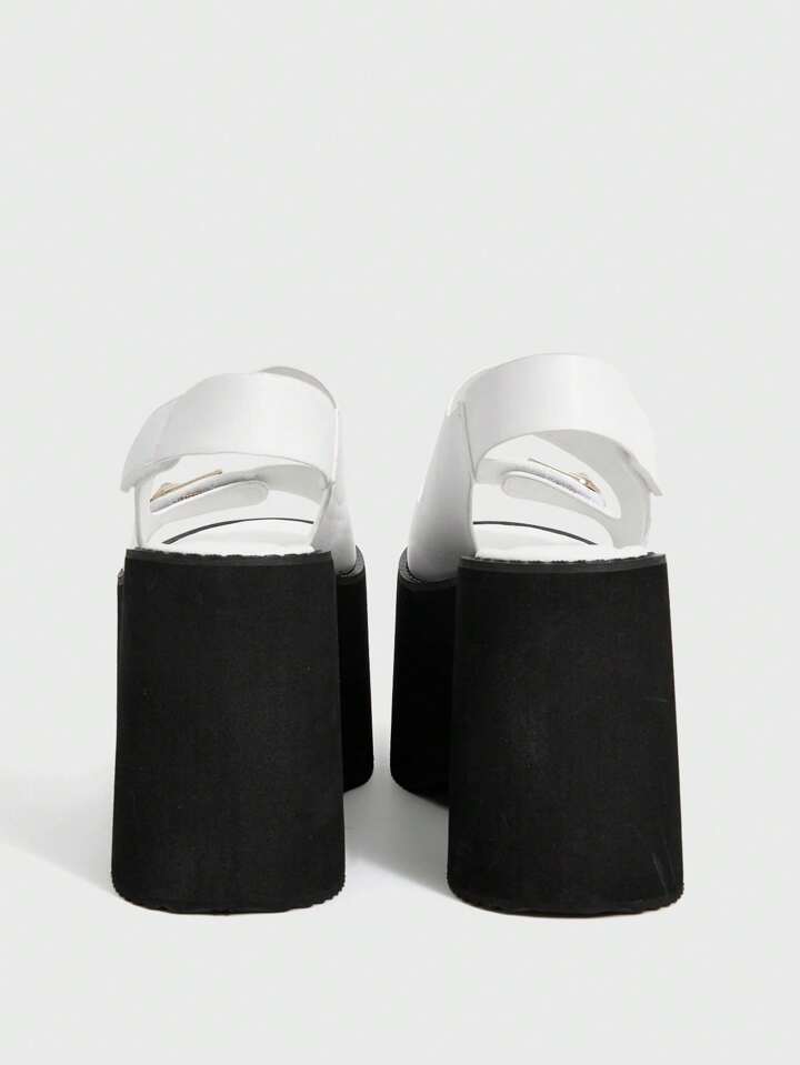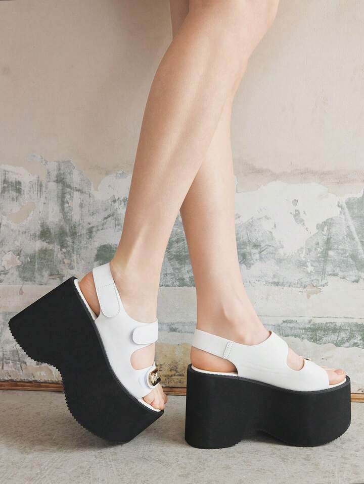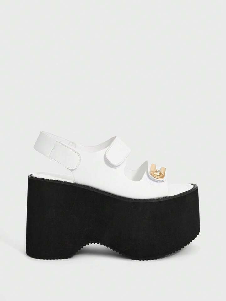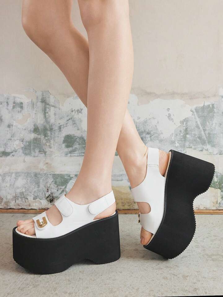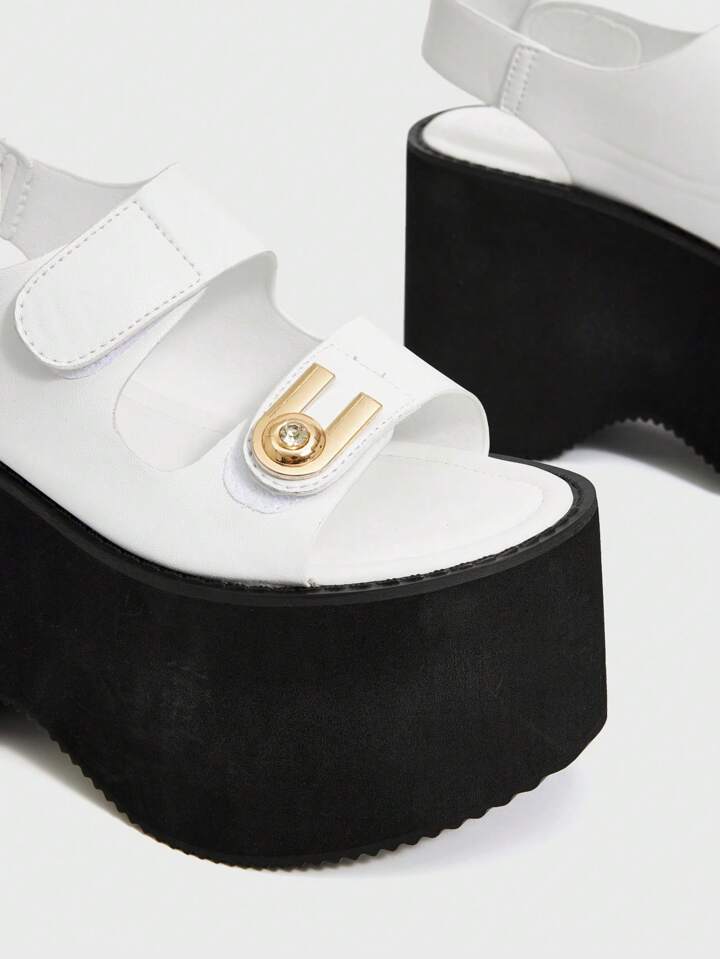 Grunge Punk Mode sehr hoher Absatz Plateau Frauen Sandalen, U-förmige Strass Schnalle Doppelgurt rückenfreie Klettverschluss Cut Out Offene Zehendesign