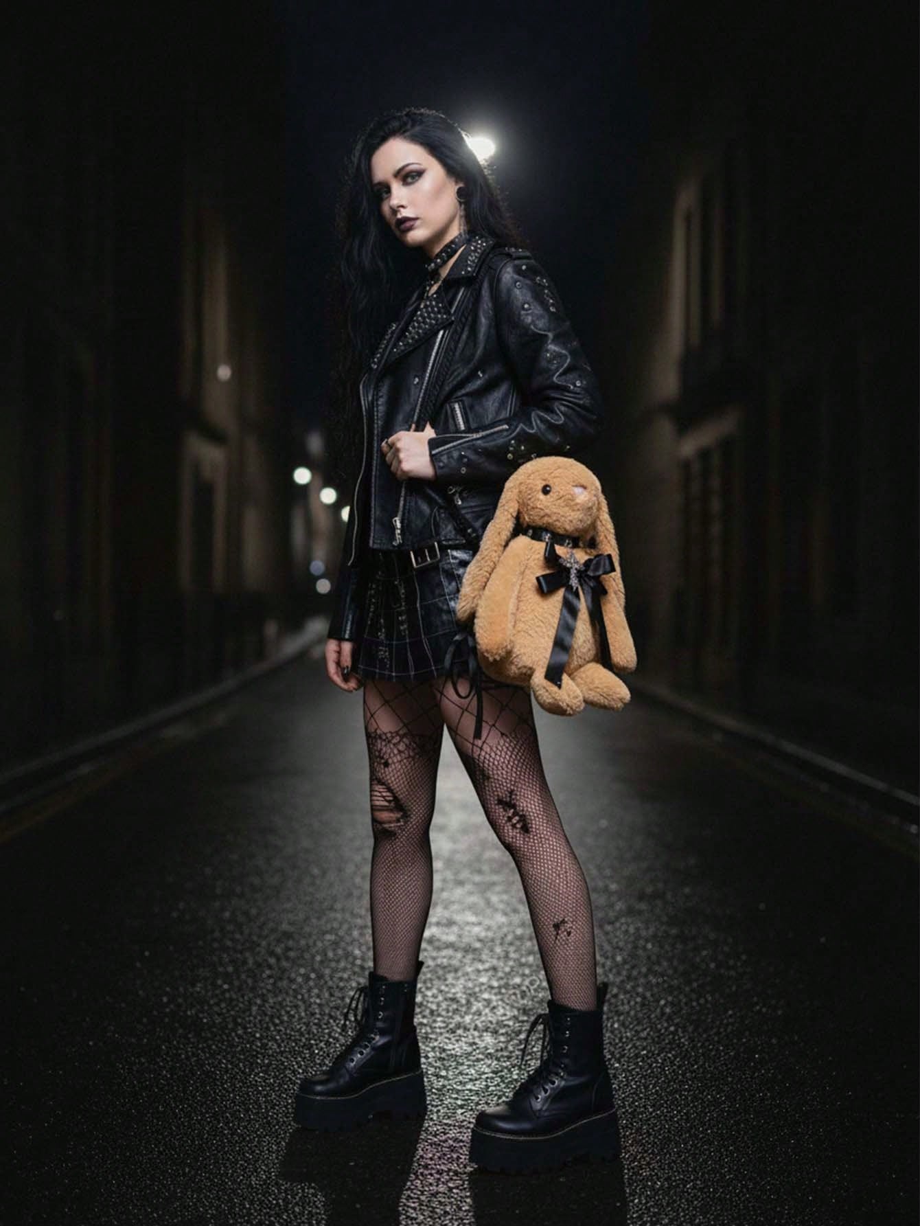 Grunge Punk Modischer Y2K Plüsch Hase & Kreuz Rucksack