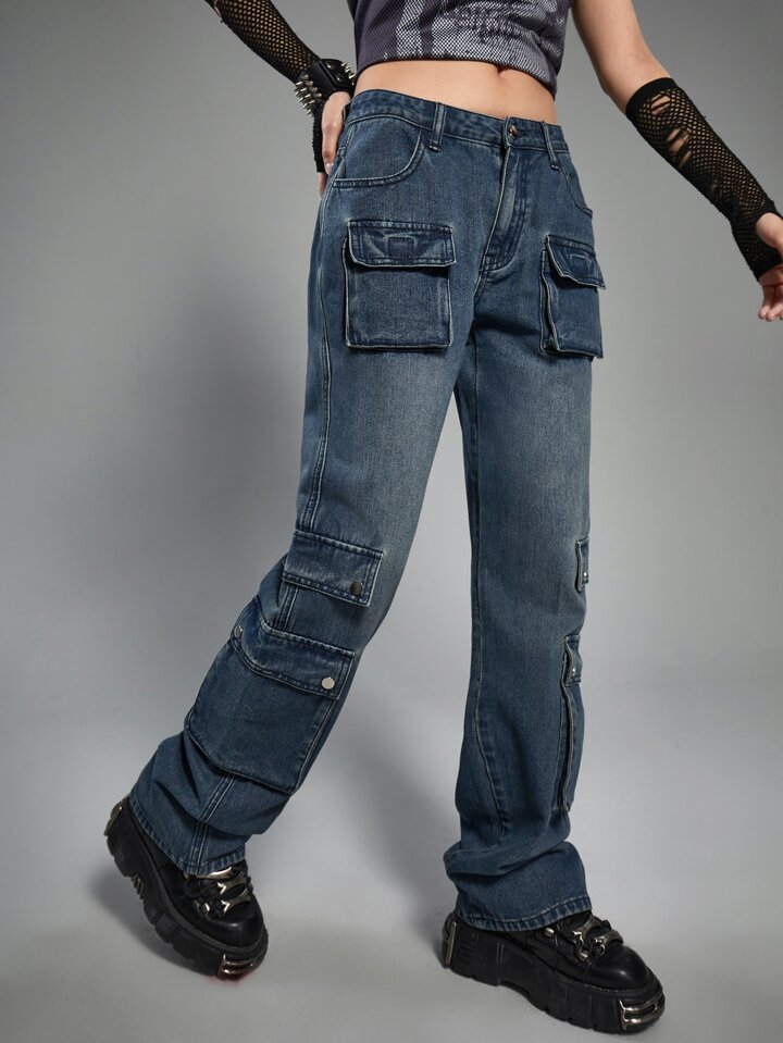 Grunge Punk Cargo Jeans mit Pattentasche