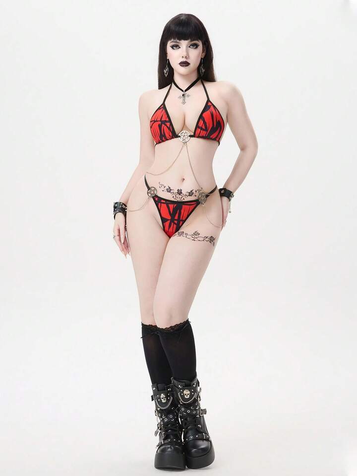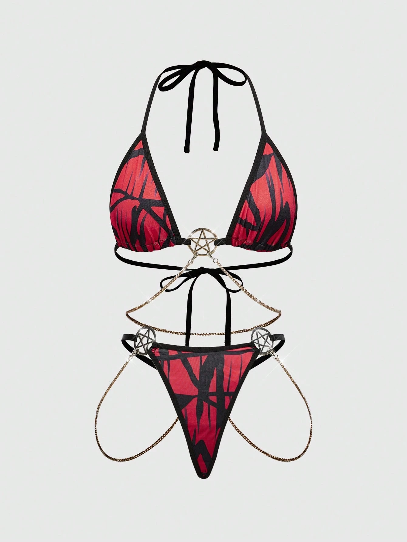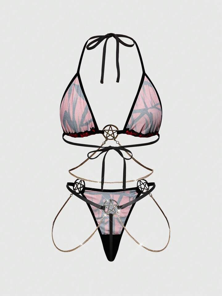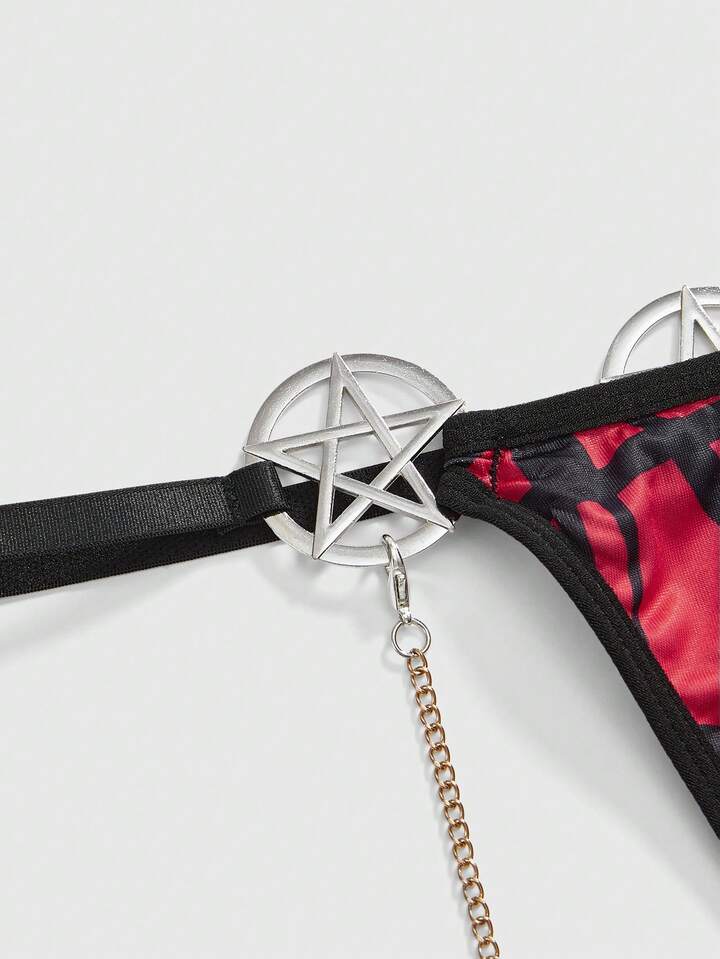 Grunge Punk Gotischer Hexagramm Metall Ring Ketten Dreieck BH Set
