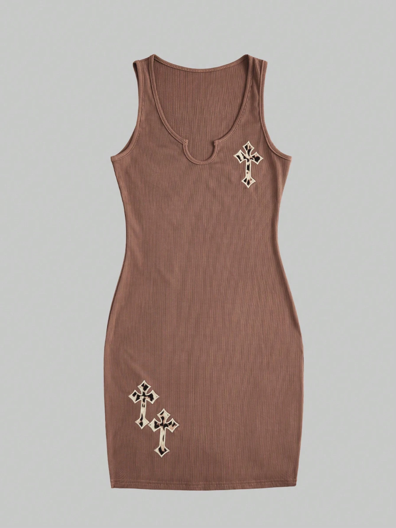 Grunge Punk Tank Kleid mit Grafik Muster, eingekerbtem Kragen