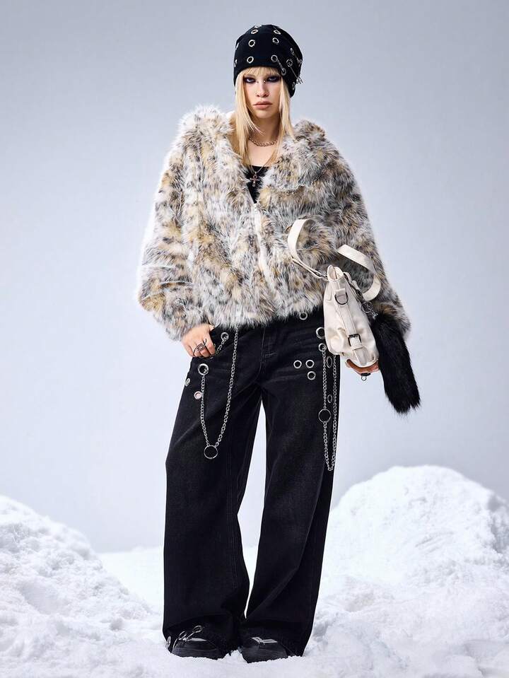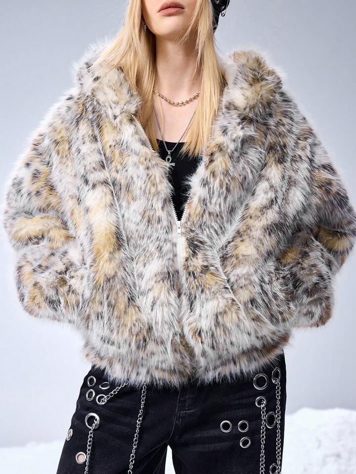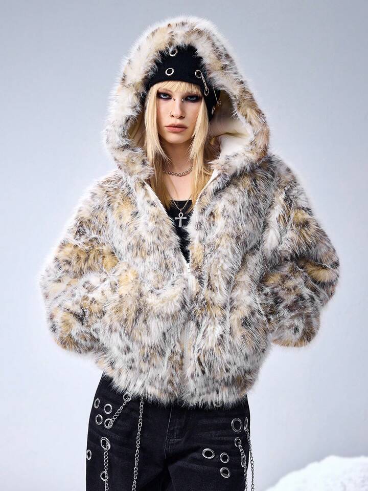 Grunge Punk Grauer Farbverlauf Polka Punkt Kunstpelz Kapuzenjacke