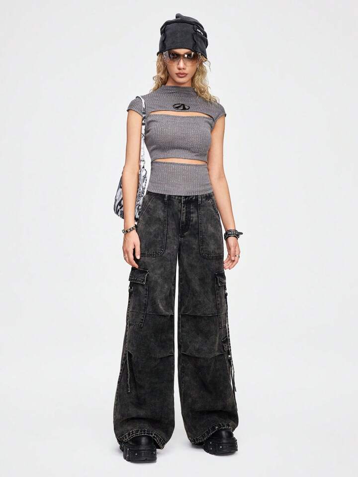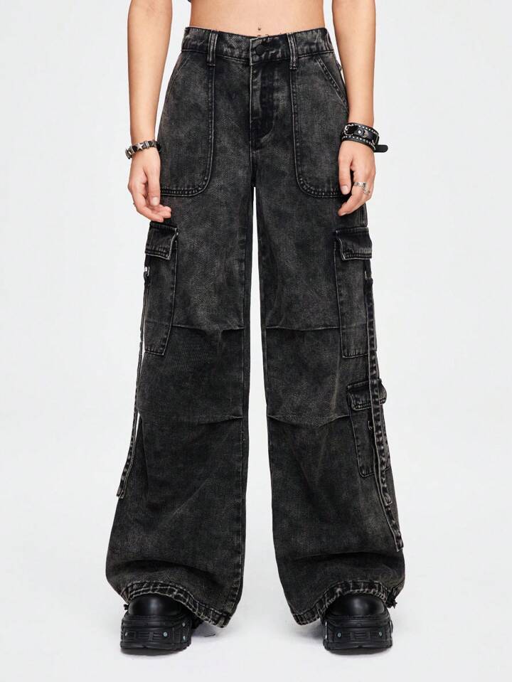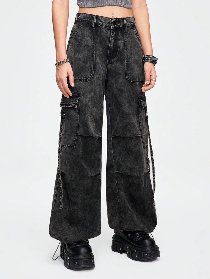 Grunge Punk Grunge Street Fashion Retro Hip-Hop schwer verarbeitete Schneeflocken Muster, tief sitzende weite Boyfriend-Jeans mit verstellbaren Bündchen im Vintage-Look, Schule