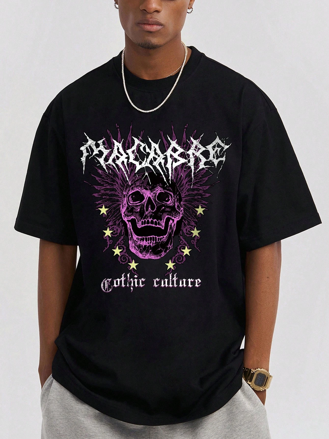 Grunge Punk Männer T-Shirt mit Schädel & Buchstaben Grafik,