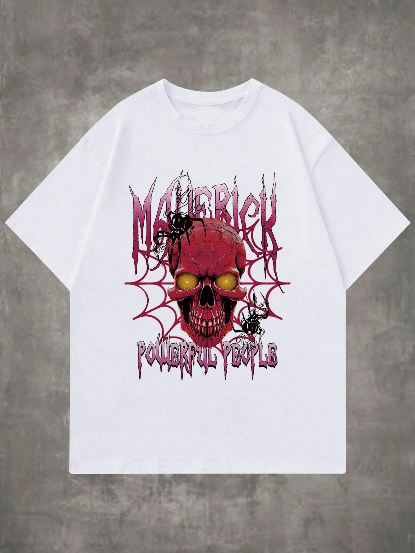 Grunge Punk Männer T-Shirt mit Schädel & Spinne Muster,