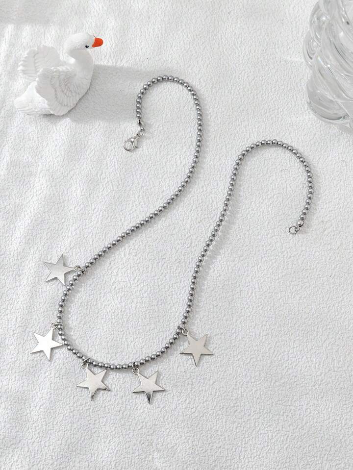 Grunge Punk Hochwertige Graue Fünf-sterne-anhänger Perlenkette