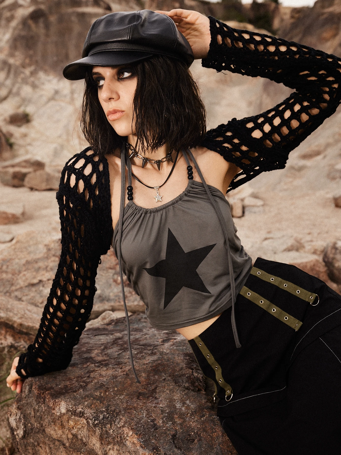 Grunge Punk Cardigan mit Loch, Super Crop