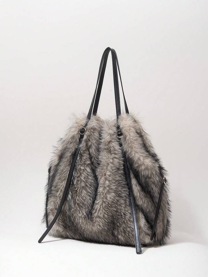 Grunge Punk Damen Umhängetasche, Hobo Tasche, Plüschtasche, Kunstfell, Plüsch, Fell & Flaum, modisch, personalisiert, vielseitig, Straße, süß und cool Mädchen, heiße Mädchen, Y2K, Punk, Herbst und Winter (zufälliges Muster)