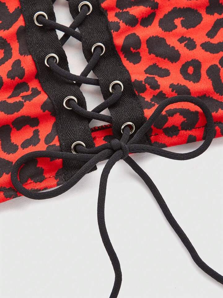 Grunge Punk Leopardenmuster Trägerloses Crop-top Mit Farbblock Details