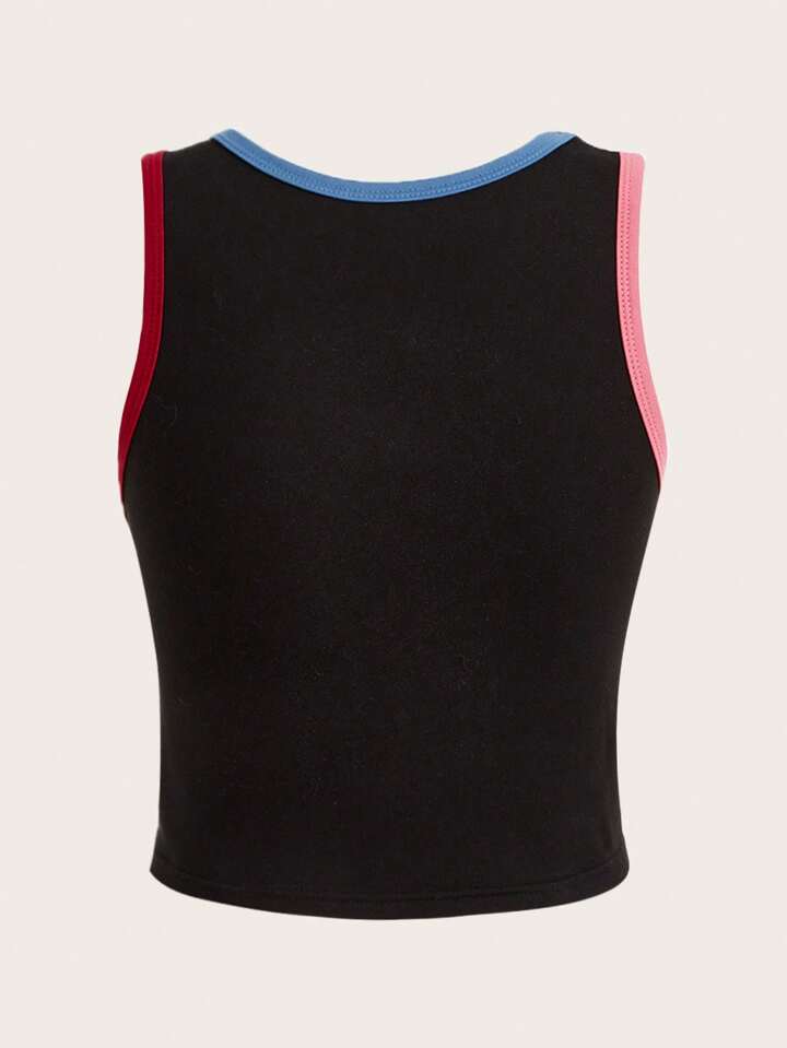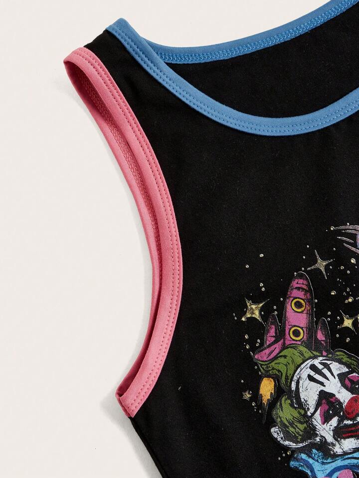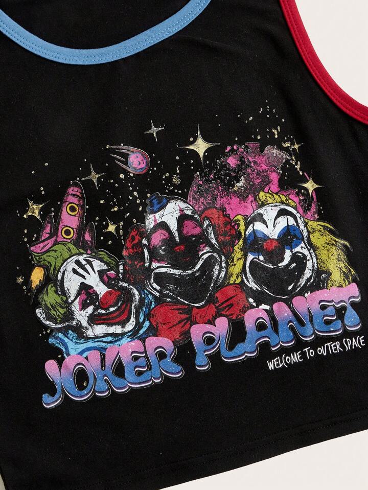 Grunge Punk Tank Top mit Buchstaben Grafik, Kontrastsaum,
