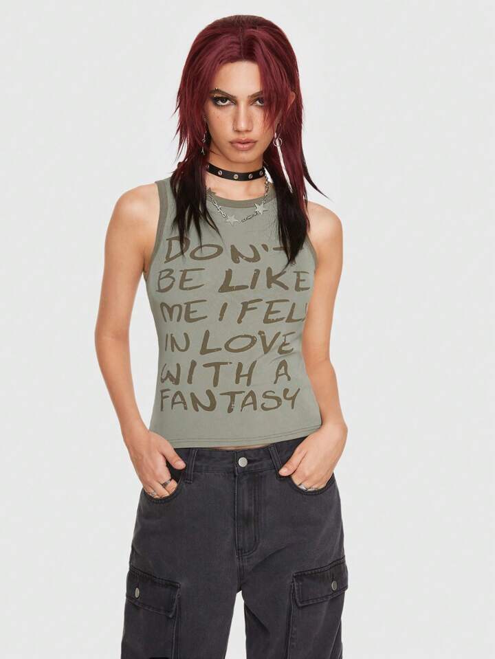 Grunge Punk Tank Top mit Buchstaben Grafik,