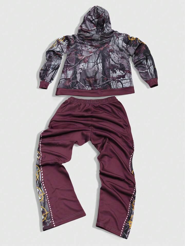 Grunge Punk Herren 2-teiliges Set aus Buchstaben-Muster Minimalist Hoodie und Sweathose