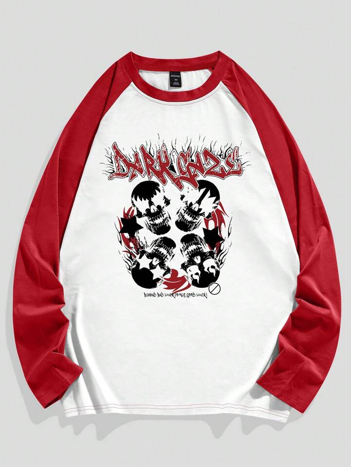 Grunge Punk Herrenfarbblock Raglanärmel Langarm T-shirt Geeignet Für Frühling Und Sommer