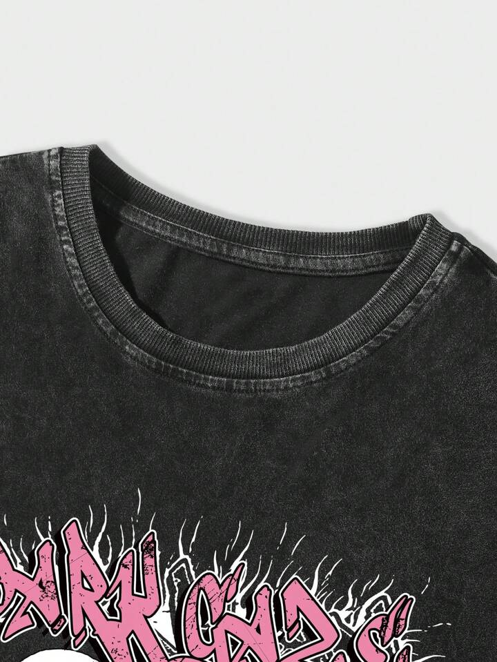 Grunge Punk Herren T-Shirt mit Schädel- und Buchstaben Grafik, Y2K-Stil, Schule