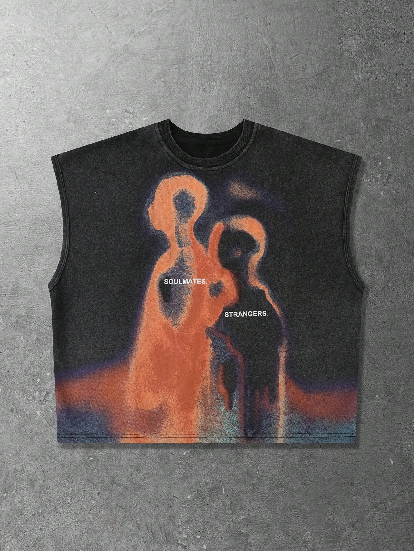 Grunge Punk Herren lässiges, modisches, bedrucktes Crop Fit Tank Top im Used-Look, Sommer