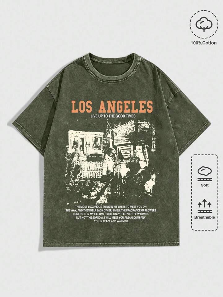Grunge Punk Herren Lässig T-Shirt mit Slogan Aufdruck, Sommer, 2000er Jahre Stil
